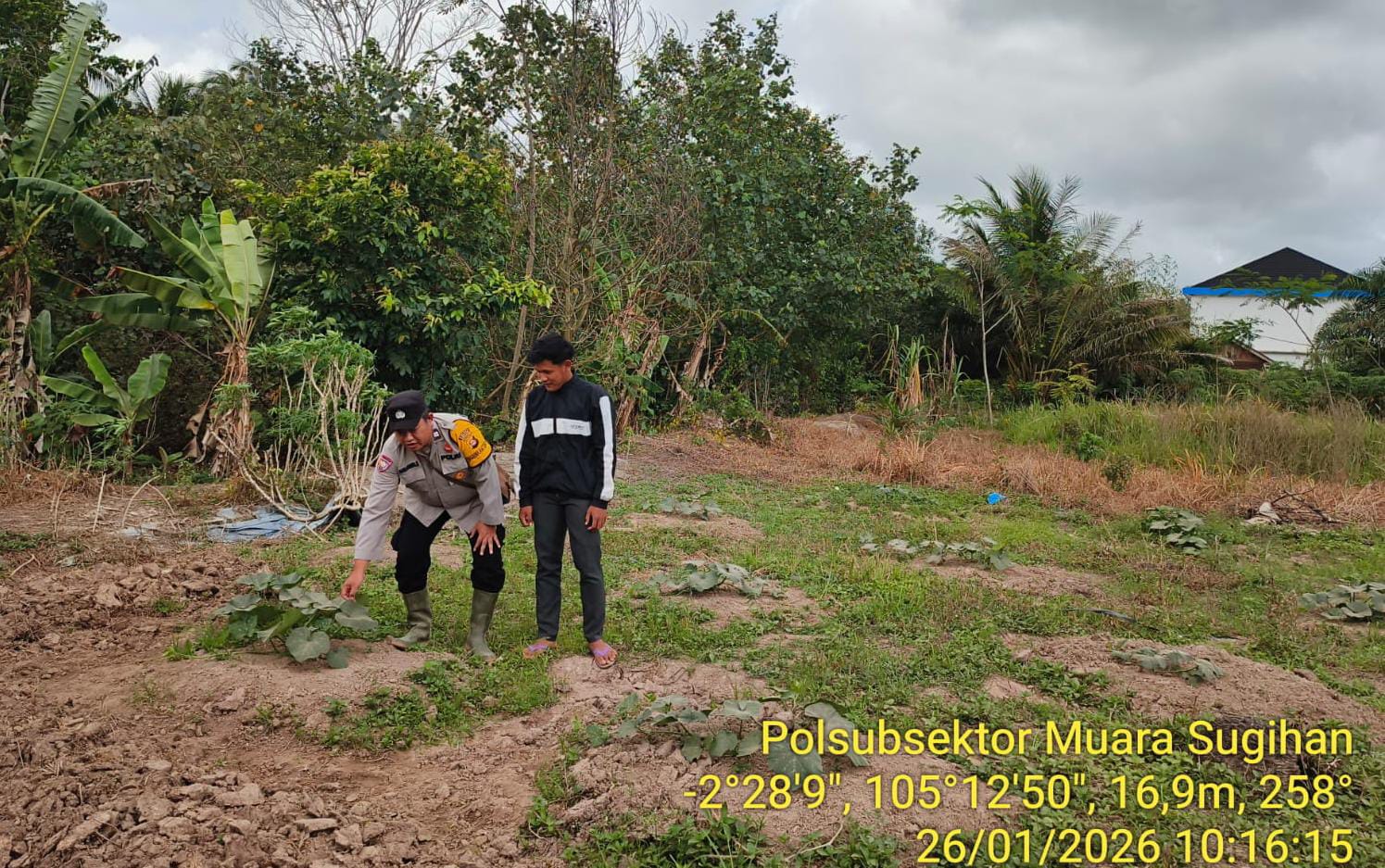 Bhabinkamtibmas Polsek Muara Padang, Aiptu Darsandi Supriyadi, S.H., melakukan sambang dan memberikan himbauan kepada warga agar memanfaatkan lahan pekarangan sebagai sumber ketahanan pangan. Dalam kegiatan tersebut, Aiptu Darsandi turut mendampingi dan mendorong kegiatan penanaman labu siam di lahan milik salah satu warga, Martono, sebagai bentuk nyata pelaksanaan Program P2B.