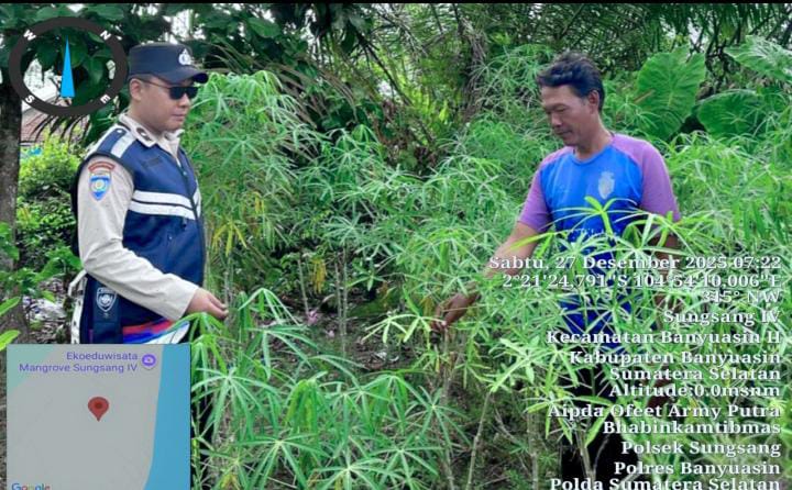 Banyuasin, CB– Bhabinkamtibmas Polsek Sungsang menunjukkan peran aktifnya dalam mendukung program pemerintah dengan menggerakkan masyarakat di wilayah binaannya. Pada Sabtu (27/12/2025) siang, Aipda Ofeet Army Putra melaksanakan kegiatan di Desa Sungsang IV, Kecamatan Banyuasin II.