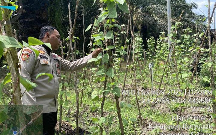 Banyuasin, CB– Bhabinkamtibmas Pulau Rimau secara aktif menggerakkan masyarakat untuk mendukung program nasional swasembada pangan. Kegiatan ini dilaksanakan di Desa Rukun Makmur, Kecamatan Pulau Rimau, Kabupaten Banyuasin, pada Rabu (5/11/2025).