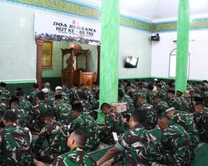 Palembang – Segenap Prajurit, PNS dan Ibu Persit Korem 044/Gapo melaksanakan doa bersama menjelang puncak HUT ke-80 TNI, bertempat di Masjid Al Ikhlas Korem 044/Gapo