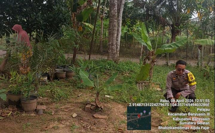 Banyuasin, CB– Dalam upaya mendukung ketahanan pangan nasional, jajaran Kepolisian Sektor (Polsek) Pangkalan Balai melalui personel Bhabinkamtibmas terus menggencarkan program pemberdayaan masyarakat di tingkat desa. Pada hari Rabu (8/4/2026), Aipda Fajar Pratama melaksanakan kegiatan himbauan dan penggerakan masyarakat di Desa Pelajau, Kecamatan Banyuasin III, Kabupaten Banyuasin.