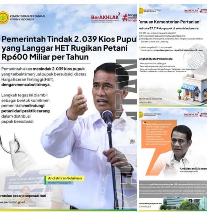 Kementerian Pertanian bersama Satgas Pangan, Kejaksaan, dan Kepolisian kini memperketat pengawasan distribusi pupuk bersubsidi. Pengawasan digital dan penegakan hukum diperkuat agar alur distribusi pupuk menjadi lebih adil, transparan, dan tepat sasaran.