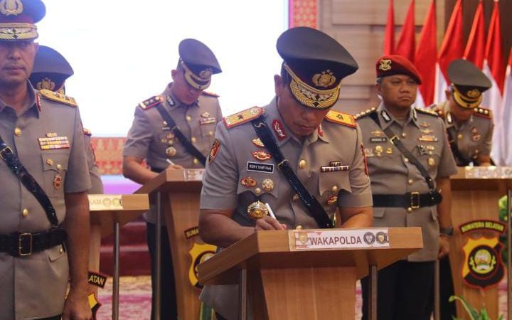 Palembang, CB- Kapolda Sumsel Irjen Pol Andi Rian R Djajadi SIK MH memimpin upacara Serah Terima Jabatan Wakapolda Sumsel, sejumlah Pejabat Utama Polda Sumatera Selatan (Sumsel) dan Kasatwil jajaran Polda Sumsel dilantai 7 Auditorium Presisi Polda Sumsel Senin (5/1/2026) pagi.