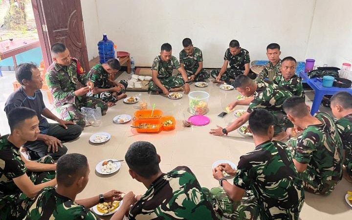Suasana penuh canda dan kekeluargaan pun terasa hangat. Tidak ada sekat antara prajurit dan warga, semuanya menyatu dalam kebersamaan. Bagi anggota Satgas, momen makan bersama ini bukan hanya sekadar mengisi tenaga, tetapi juga mempererat tali silaturahmi serta memperkuat ikatan emosional dengan masyarakat.