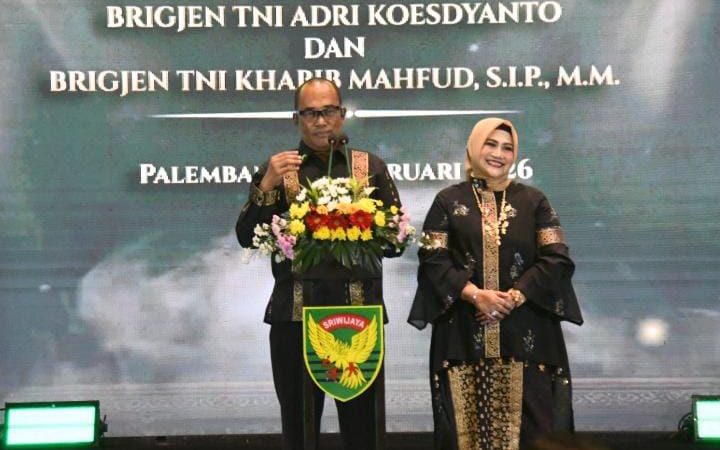 Palembang, CB- Suasana haru, hangat dan penuh kekeluargaan mewarnai acara Lepas Sambut Komandan Korem 044/Garuda Dempo yang digelar di Soma Grand Ballroom Kota Palembang, Sabtu (28/2/2026). Bertajuk “Kenanglah Kami”, kegiatan ini menjadi momentum penting pada serah terima jabatan Danrem 044/Gapo dari Brigjen TNI Adri Koesdyanto kepada Brigjen TNI Khabib Mahfud, S.I.P., M.M.