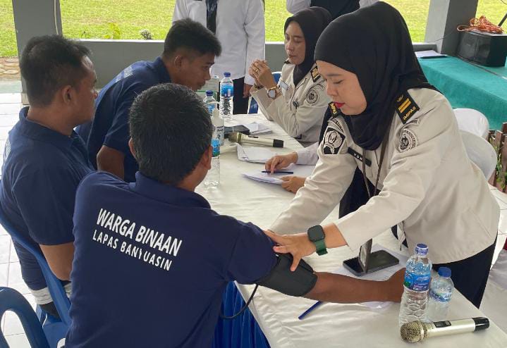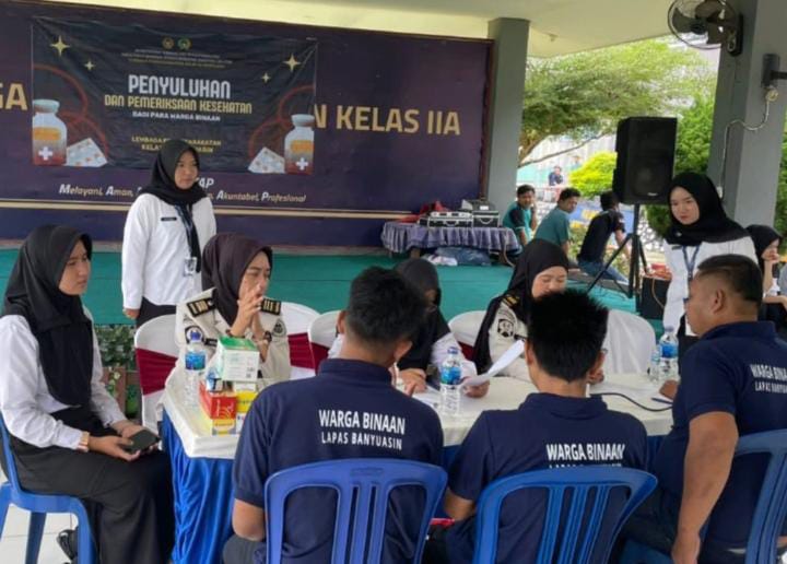 Banyuasin, CB- Lembaga Pemasyarakatan (Lapas) Kelas IIA Banyuasin melaksanakan kegiatan penyuluhan dan pemeriksaan kesehatan gratis bagi warga binaan, Kamis (22/01/2026). Kegiatan tersebut berlangsung di Aula Lapas Kelas IIA Banyuasin mulai pukul 09.00 WIB hingga selesai.