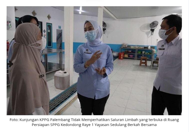 Selain itu, dalam kunjungan tersebut, Kepala KPPG Palembang juga tidak memperhatikan kondisi saluran limbah yang terbuka di dalam dapur SPPG Ruang Persiapan, yang turut menjadi faktor kebersihan dan higienitas lingkungan pengolahan makanan.