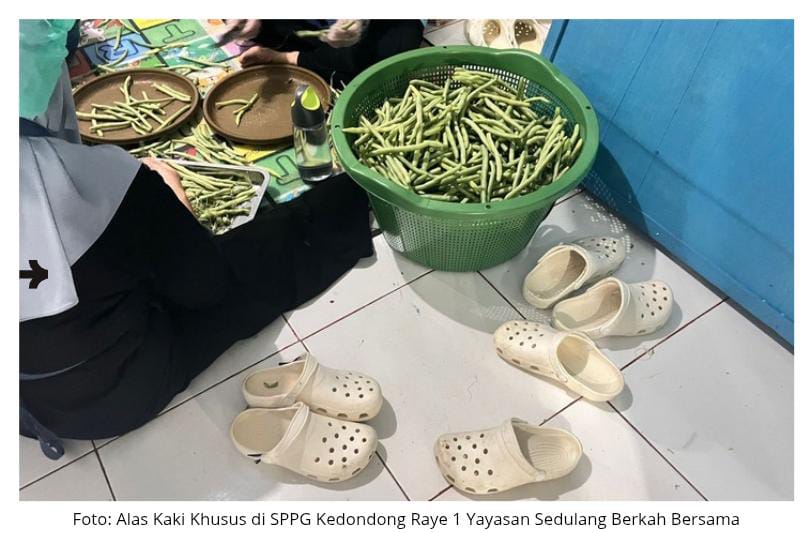 “Harus pakai alat pelindung diri (APD) lengkap dan alas kaki khusus di dalam area SPPG,” tegas Koordinator Wilayah BGN Kabupaten Banyuasin, Willy Alkusari, S.T., RT., M.Han, beberapa waktu lalu.