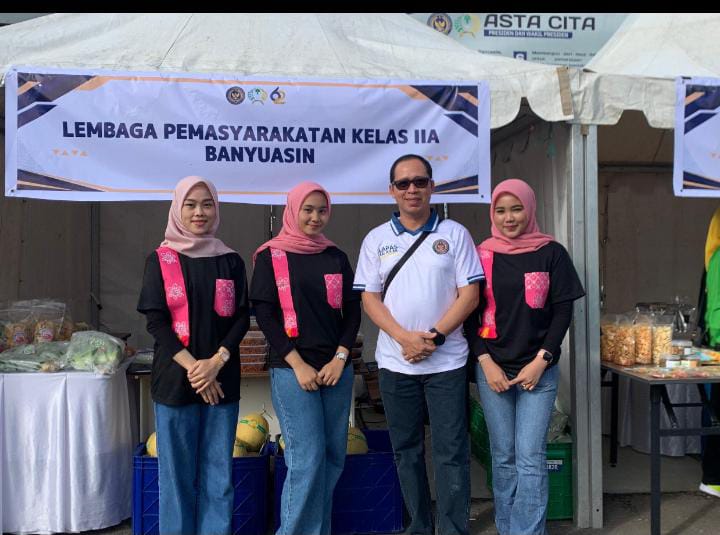 Banyuasin, CB – Lembaga Pemasyarakatan (Lapas) Kelas IIA Banyuasin turut ambil bagian dalam memeriahkan rangkaian peringatan Hari Bakti Pemasyarakatan (HBP) ke-62 Tahun 2026 dengan menggelar stand bazar produk hasil karya warga binaan, pada Jumat (10/04/2026). Kegiatan ini dipusatkan di LPKA Kelas I Palembang dan menjadi bagian dari Gerakan Cinta Produk Narapidana.