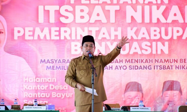 Rantau Bayur, CB– Pemerintah Kabupaten Banyuasin kembali melaksanakan Sidang Isbat Nikah Tahun 2025 yang dipusatkan di Halaman Kantor Desa Rantau Bayur, Kecamatan Rantau Bayur, Selasa (18/11). Kegiatan tersebut dibuka langsung oleh Bupati Banyuasin, Dr. H. Askolani, S.H., M.H., dan dihadiri unsur Forkopimda serta jajaran Pemerintah Daerah.