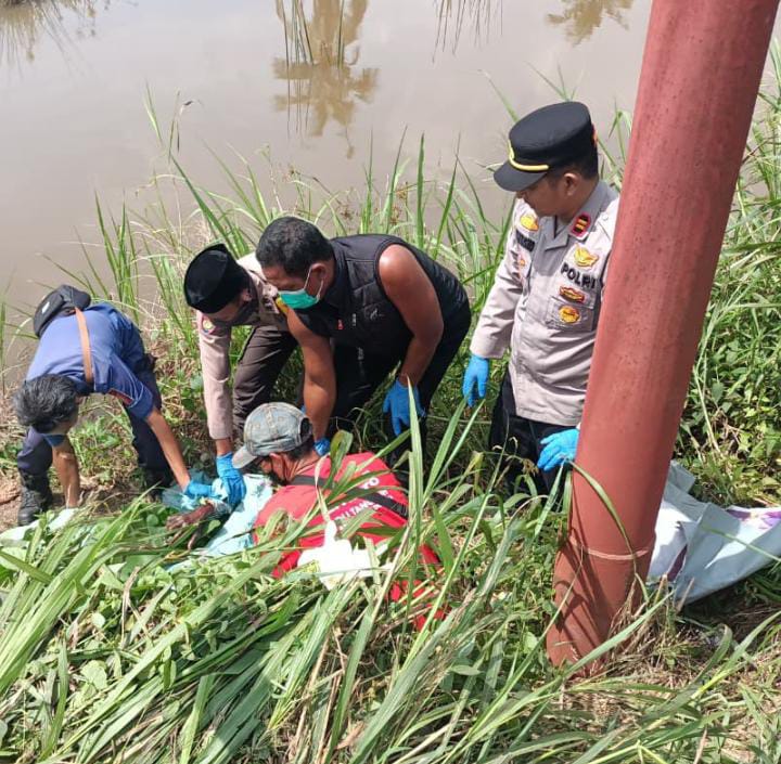 BANYUASIN, CB– Warga Desa Sungai Pinang, Kecamatan Rambutan, Kabupaten Banyuasin digegerkan dengan penemuan sesosok mayat pria di area persawahan Simpang Meritai, Sabtu (28/2) pagi.