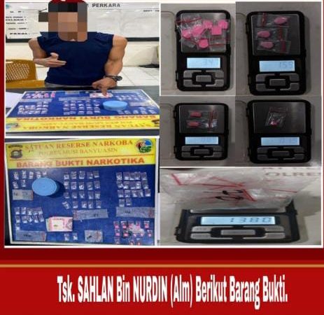 Muba, CB— Satuan Reserse Narkoba Polres Musi Banyuasin (Muba) kembali mengungkap kasus tindak pidana penyalahgunaan narkotika. Seorang pria bernama Sahlan, warga Dusun II Desa Kertayu, Kecamatan Sungai Keruh, diamankan polisi karena diduga sebagai pengedar narkotika jenis sabu.