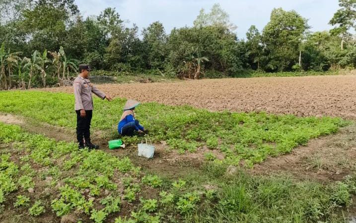 Bripka Ahmad Supri Sukoco menyampaikan bahwa pemanfaatan lahan pertanian maupun pekarangan rumah memiliki peran strategis dalam menjaga ketahanan pangan masyarakat, khususnya di tingkat desa.