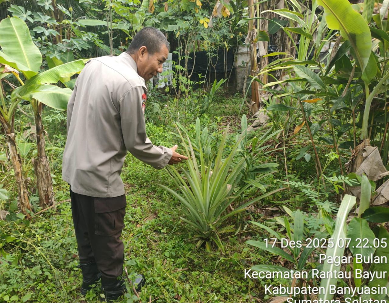BANYUASIN, CB— Bhabinkamtibmas Polsek Rantau Bayur, Bripka Al Ghifari, S.H., terus berperan aktif menggerakkan masyarakat dalam mendukung program pemerintah pusat menuju swasembada pangan nasional. Upaya tersebut diwujudkan melalui kegiatan sosialisasi Program Pekarangan Pangan Bergizi (P2B) yang dilaksanakan di Desa Tebing Abang, Kecamatan Rantau Bayur, Rabu (17/12/2025).