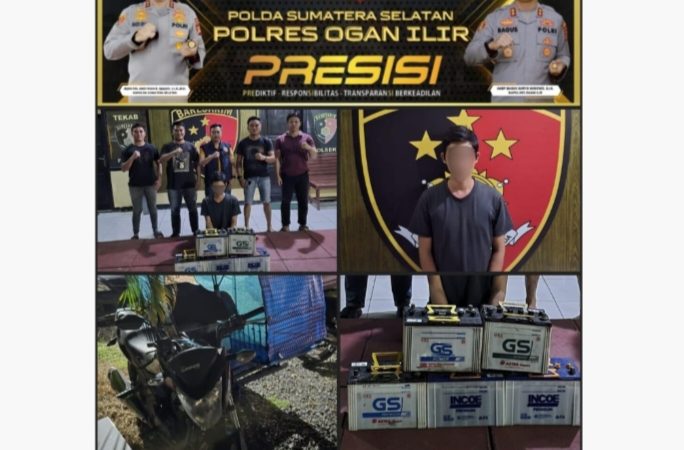Ogan Ilir, CB – Unit Reskrim Polsek Indralaya berhasil mengungkap kasus pencurian dengan pemberatan yang terjadi di area parkir SPBU Desa Meranjat III, Kecamatan Indralaya Selatan, Kabupaten Ogan Ilir. Seorang pelaku berinisial M (35) ditangkap bersama sejumlah barang bukti berupa aki mobil, dongkrak, dan bahan bakar minyak hasil curian.