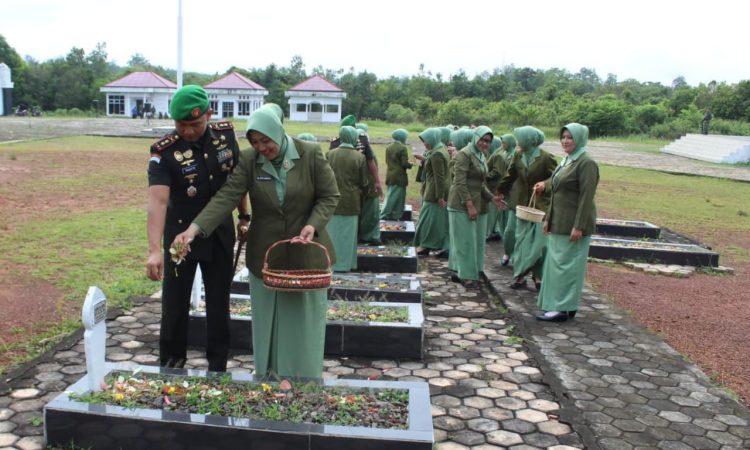 Kegiatan diawali dengan upacara penghormatan kepada arwah para pahlawan sebagai bentuk penghargaan atas jasa-jasa mereka dalam memperjuangkan kemerdekaan bangsa. Suasana khidmat terasa saat Dandim meletakkan karangan bunga di tugu makam pahlawan, kemudian dilanjutkan dengan tabur bunga di pusara para pejuang yang telah gugur.