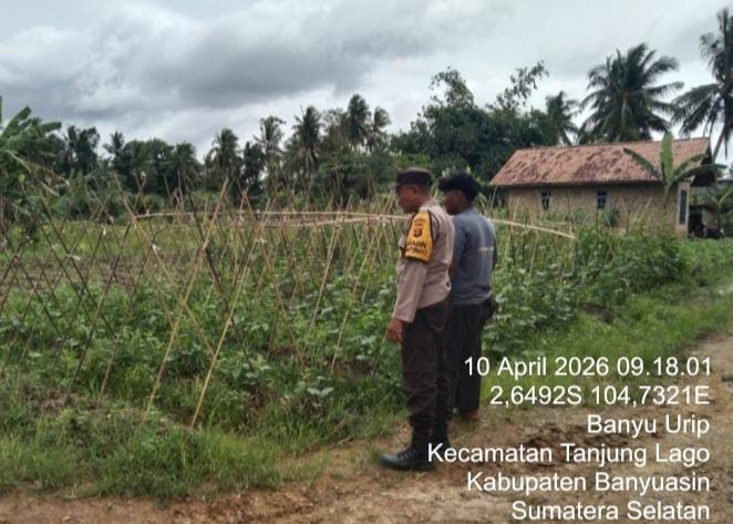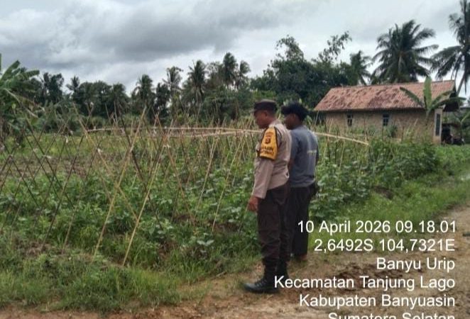 Banyuasin, CB– Dalam rangka mendukung program ketahanan pangan nasional menuju Indonesia Emas 2045, AIPDA Purnono, Bhabinkamtibmas Polsek Tanjung Lago, melaksanakan kegiatan pemberdayaan dan himbauan Program Pekarangan Pangan Lestari (P2B) di Desa Banyu Urip, Kecamatan Tanjung Lago, Kabupaten Banyuasin, Jumat (10/4/2026) siang.