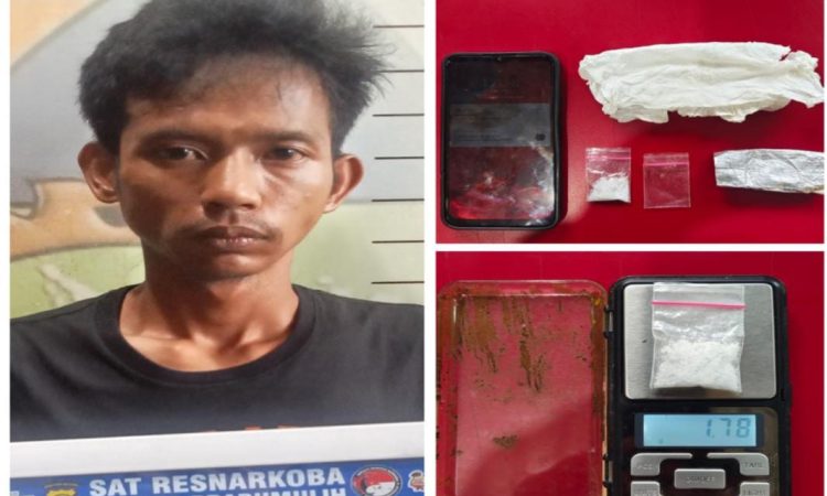 Hasil pemeriksaan mengungkap adanya satu paket sabu seberat bruto 1,78 gram yang disembunyikan di balik casing bagian belakang handphone, dibungkus menggunakan kertas timah rokok.