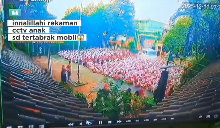 Kejadian yang terekam CCTV sekitar pukul 06.30 WIB menunjukkan sebuah mobil berwarna putih membawa logistik MBG datang dari arah kiri sekolah dan langsung menghantam pagar yang saat itu tertutup rapat.