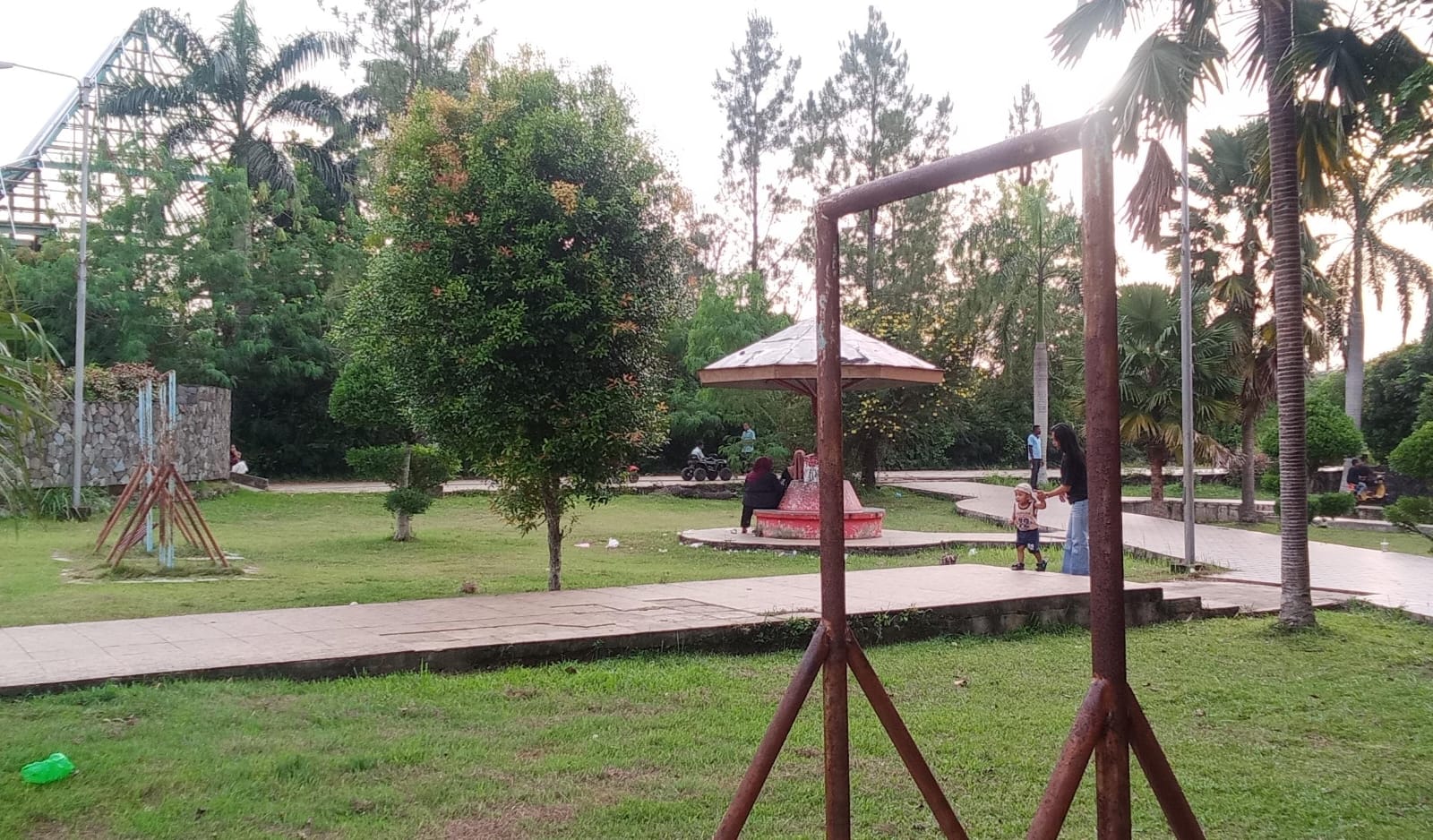 Sejumlah area taman tampak dipenuhi sampah berserakan, sementara beberapa fasilitas umum seperti area bermain anak terlihat mulai rusak. Kondisi ini tentu mengurangi kenyamanan pengunjung yang datang untuk berwisata atau sekadar bersantai bersama keluarga.